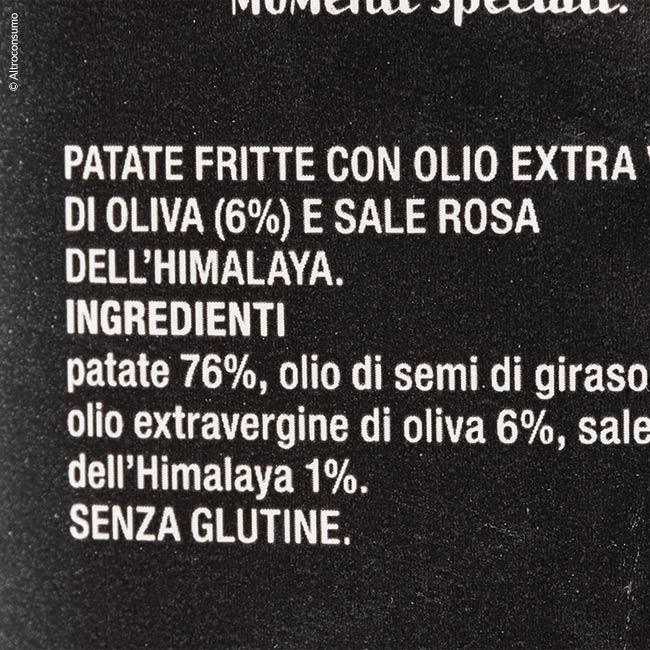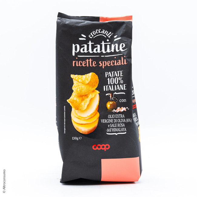 La presenza di questa indicazione sul packaging delle patatine è il classico trucco per mettere in evidenza un ingrediente di maggior pregio (l’olio di oliva in questo caso) rispetto ad altri ingredienti meno "nobili" (come altri tipi di olio). Nell'immagine qui sotto vediamo l'esempio delle patatine "Ricette Speciali Coop" che contengono olio extravergine d'oliva in una percentuale minore rispetto all'olio di semi di girasole.