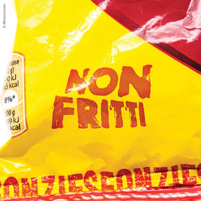 Le Fonzies per esempio riportano la scritta “non fritti” ma contengono 34 grammi di grassi (su 100 g). Non sono certo pochi, anzi sono di più rispetto a diverse patatine “fritte”.