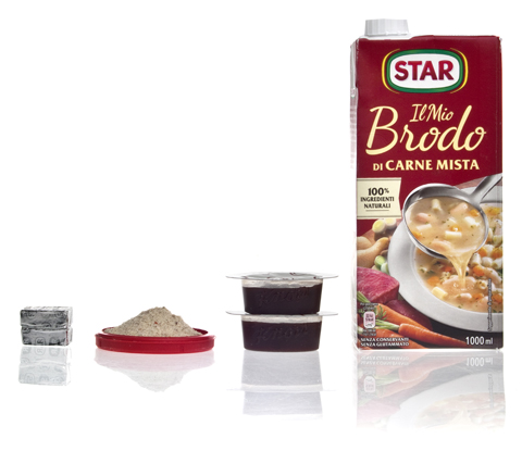 La confezione è decisamente ingombrante: a prima vista la confezione appare dimensionata sul prodotto, ma il contenuto in % di ingredienti meno del 2% e il resto è acqua. Compatta e squadrata facilita però lo stoccaggio e il trasporto a livello industriale, ma per chi fa la spesa senza auto è sicuramente un peso inutile. L’imballaggio in poliaccoppiato (più materiali insieme) rende la confezione più difficile da riciclare del singolo materiale. Ogni comune su questo tipo di imballaggi ha la propria indicazione specifica: chi lo raccoglie nella carta, chi nella plastica, chi nell’indifferenziata. Ricordatevi di sciacquarlo prima di gettarlo e togliere il tappo che va nella plastica. È già pronto all’uso e facile da dosare, ma per evitare gli sprechi, va utilizzato completamente entro pochi giorni dall’apertura. L’imballaggio pesa circa 35 g e corrisponde ad 1 litro di brodo.