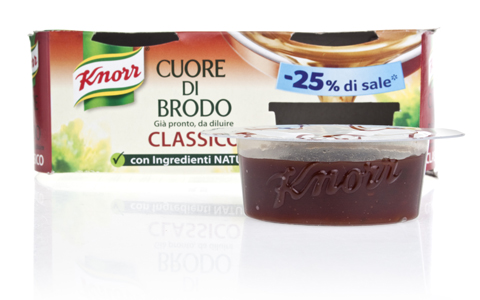 A causa della forma ovale delle singole porzioni resta un po’ di spazio vuoto all'interno della confezione di cartone (stondata e non compatta) che influisce negativamente anche sullo stoccaggio e sul trasporto. La presenza di 2 imballaggi (esterno di cartone ed interno di plastica) aumenta la quantità di rifiuti prodotti. Per quanto riguarda lo smaltimento, le vaschette interne devono essere buttate nell'indifferenziata: anche se si tratta di plastica, infatti, sono contaminate da alimenti. Nota positiva: il contenuto gelatinoso occupa quasi completamente il volume della vaschetta e non c’è spreco. La scatola esterna di cartone si schiaccia facilmente e può essere riciclata nella carta. Ogni vaschetta da 28 g corrisponde a 500 ml di brodo, la confezione è da 4 vaschette. In media per 1 litro di brodo usiamo 4,5 g di imballaggio, solo per metà riciclabile.