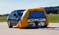 Un rimorchio piazzato appositamente per il test ha rappresentato l’ostacolo davanti all’auto. La reazione dei sistemi di frenata d’emergenza assistita è stata misurata a diverse velocità di marcia della vettura e dell’ostacolo e anche con il rimorchio fermo.