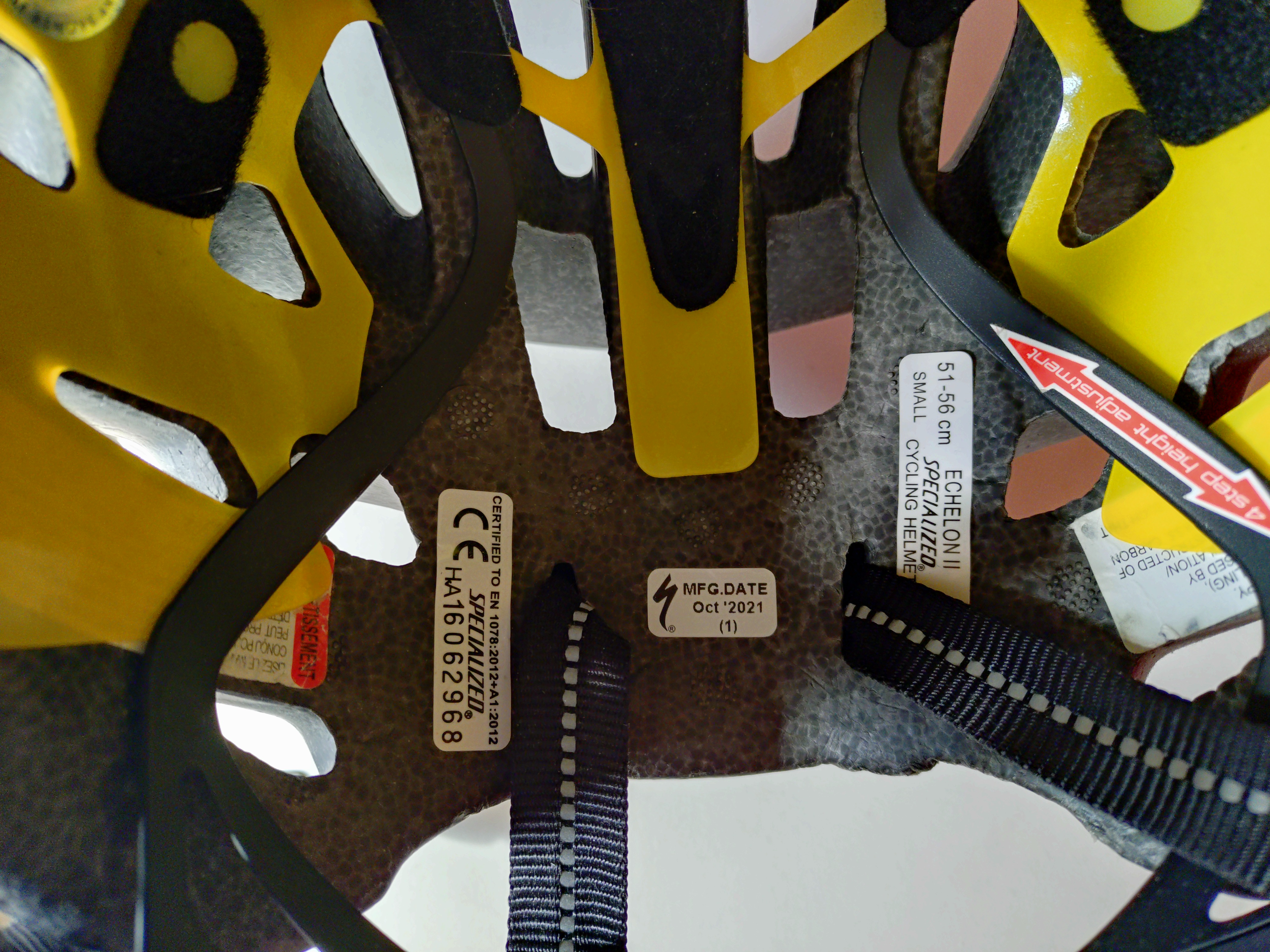 Ogni modello di casco è venduto in taglie diverse: prima di comprarne uno provatelo e verificate che sia la taglia giusta per voi. Ma come misurare la taglia di un casco per bici? La taglia in realtà è riportata su un’etichetta, solitamente all’interno del caschetto, ed è espressa come un range di cifre espresse in cm, come nell’esempio nella foto sotto.