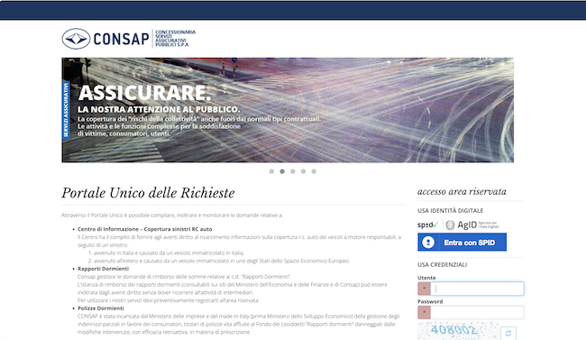 Il sito CONSAP