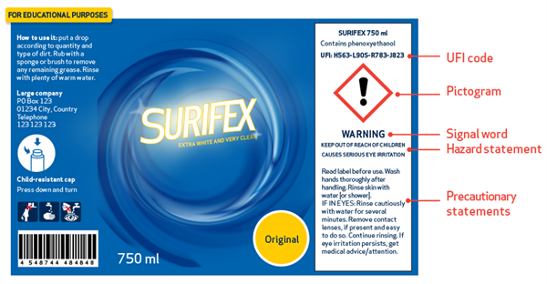 Il Regolamento detergenti stabilisce che l'etichetta di un detersivo debba anche includere tutte le informazioni utili al consumatore per un utilizzo consapevole. Gli elementi obbligatori in etichetta sono: