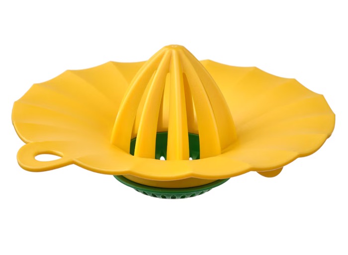 Essenziale, spesso proposto in abbinamento con una caraffa, ma lo suggeriamo soprattutto se si fa poca spremuta altrimenti le scanalature nella parte conica e la griglia inferiore raccogli semi e polpa possono facilmente saturarsi, quindi se il frutto ha molta polpa è necessario svuotare lo spremiagrumi tra una arancia e l’altra.