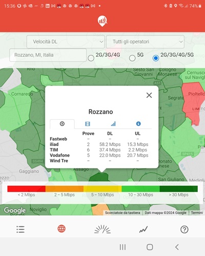 La mappa interattiva dell'applicazione consente di visualizzare informazioni sulla qualità delle reti mobili, comune per comune, a condizione chiaramente che le misurazioni siano state effettuate. Anche gli utenti possono aiutare a mappare l'Italia con maggior precisione, scaricando l’app ed utilizzandola con frequenza.