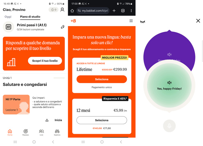 - Se parti da un livello più avanzato potresti trovarti meglio con Busuu (da preferire anche se ti interessa la possibilità di interagire con altri utenti) o Mondly.