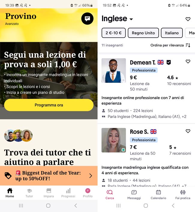 - Se invece preferisci essere seguito da un insegnante umano dovrai aprire il portafogli, ma a quel punto, prima di farlo, conviene anche confrontare la spesa prevista con il costo di una serie di lezioni private fatte di persona.