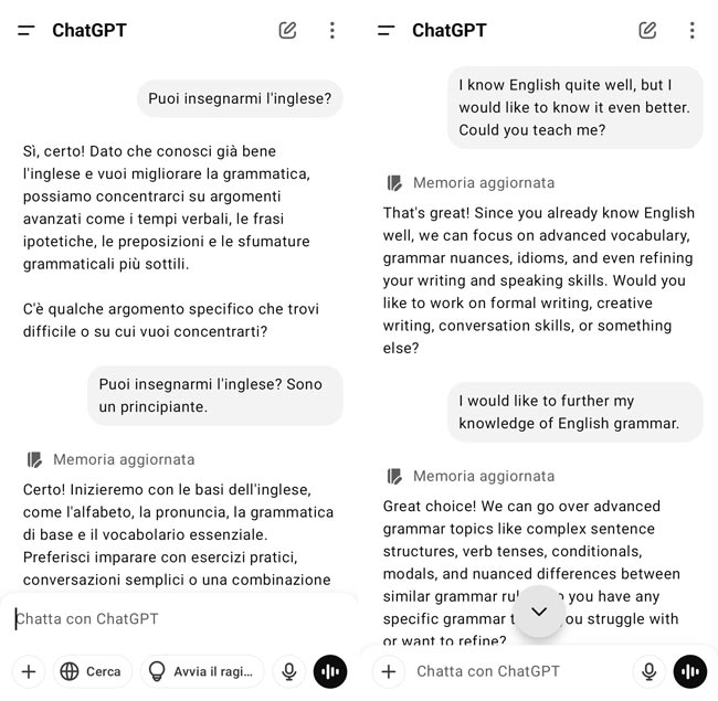 Infine un suggerimento per chi vuole tentare un approccio insolito: molte app integrano funzionalità basate sull’intelligenza artificiale, in particolare per aiutare dal lato della conversazione. Allora perché non saltare l’intermediario e farci insegnare l’inglese direttamente da ChatGPT o da uno dei suoi concorrenti? Prova a collegarti a chatgpt.com, chiedigli “Puoi insegnarmi l’inglese?” e poi segui quanto ti dirà: potrebbe essere un modo nuovo e intrigante per imparare una nuova lingua. Se conosci l’inglese già a buon livello, inoltre, puoi sfruttare le funzionalità di chat vocale di ChatGPT e interagire parlando in inglese: se ti capirà, sarà un ottimo feedback per valutare la qualità del tuo inglese parlato.