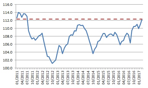 Dato precedente: 111 (febbraio 2017)