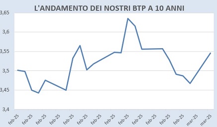 C'è quindi molta attesa sul piano che verrà presentato dalla Commissione europea. Un altro dibattito aperto e se le spese per la difesa saranno inserite all'interno delle voci usate per calcolare il deficit, e quindi per rispettare i parametri europei, oppure se saranno fuori da questo calcolo. Comunque sia, un aumento della spesa per il settore della difesa determinerà un aumento delle emissioni di obbligazioni: non si sa se questo avverrà attraverso titoli europei, come avvenuto con i bond dell'Unione europea emessi per finanziare il Recovery fund, oppure se dovranno pensarci gli Stati con i propri titoli. L'offerta di obbligazioni sui mercati, qualunque sarà la decisione e il mezzo con cui verranno finanziati i nuovi armamenti, aumenterà. La prima reazione è quindi quella di far abbassare i prezzi dei bond e far alzare, di conseguenza, i rendimenti degli stessi.
