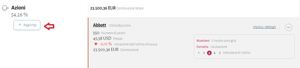 Se invece è un titolo (azione, fondo, ETF, obbligazione) che non fa parte della selezione di titoli seguiti da Altroconsumo Finanza, puoi usare il pulsante “Aggiungi”