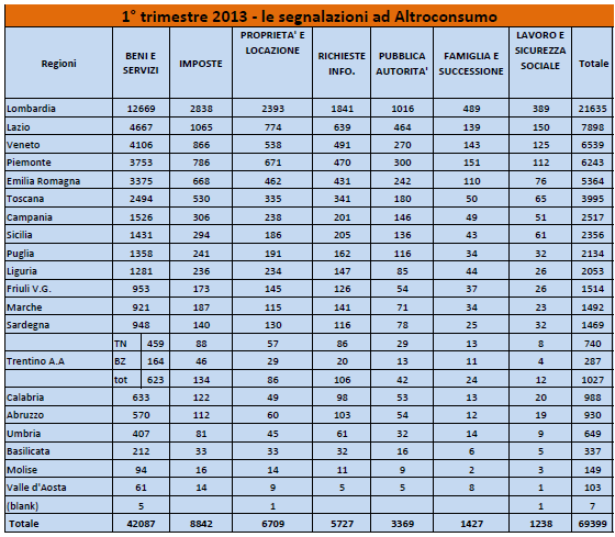 La Lombardia è la regione in cima alla hit parade della quantità di sollecitazioni ad Altroconsumo, seguita da Lazio, Veneto, Piemonte ed Emilia Romagna.