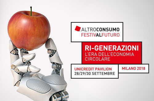 I prossimi 28, 29 e 30 settembre l’appuntamento aperto a tutti è con FestivalFuturo Ri-Generazioni, l’era dell’economia circolare, a Milano, presso l’UniCredit Pavilion www.altroconsumo.it/festival-2018.