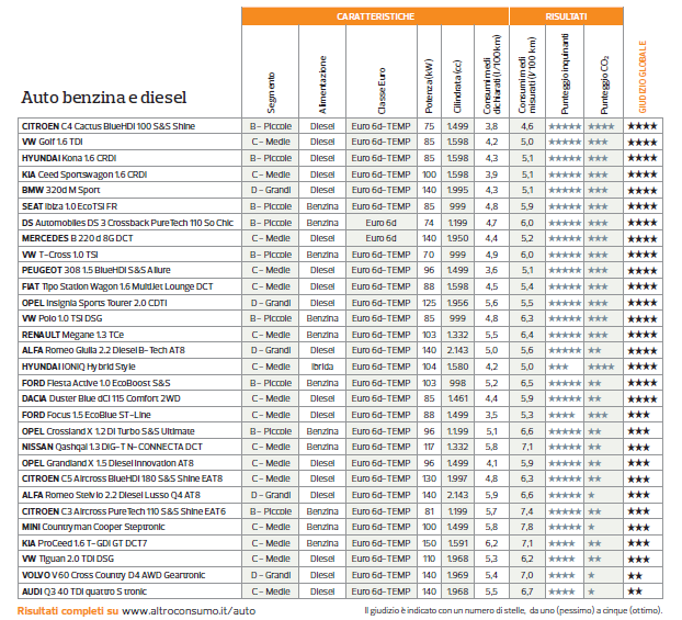 Il test sulle emissioni di Altroconsumo: metodologia e classifica