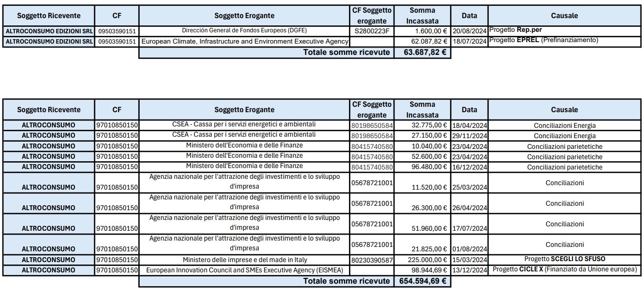Dettaglio dei contributi ricevuti nel 2024 ai sensi della L-124-2017
