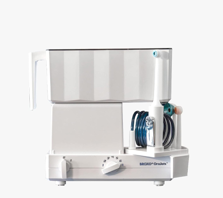Prodotto compatto e portatile, cordless con stazione di ricarica. Ha getti d’acqua potenti grazie all’ugello con tecnologia a ultrasuoni. Promette di completare la routine quotidiana di igiene orale con miglioramenti percepibili già dopo una settimana di uso continuativo. È dotato di cinque livelli di pressione dell’acqua. La confezione da due ugelli di ricambio si trova a partire da 11 € circa. Capienza del serbatoio: 200 ml, lavabile in lavastoviglie.