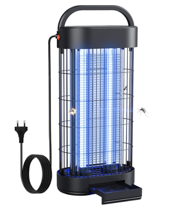 Le lampade antizanzare sono dispositivi elettrici progettati per attrarre e uccidere o intrappolare gli insetti. Il loro funzionamento si basa sull'emissione di una luce ultravioletta (UV-A) con una lunghezza d'onda di 360-390 nm, che attrae non solo le zanzare, ma anche falene e altri insetti. Una volta attratti, gli insetti vengono risucchiati da una ventola e poi catturati o eliminati tramite una piccola scarica elettrica, per poi essere raccolti in un apposito scomparto facile da svuotare e pulire.