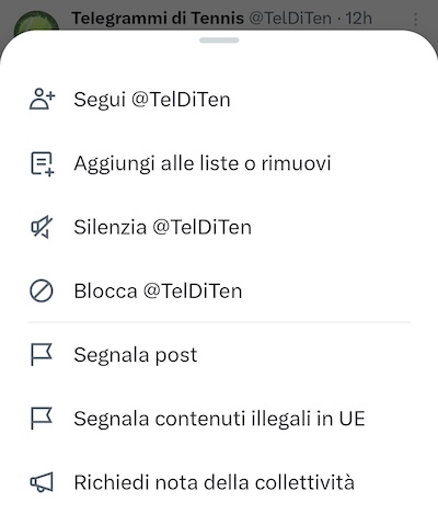 Se si utilizza X da un tablet o uno smartphone, toccando i tre pallini alla destra di qualunque post di un utente si apre un menu che consente di effettuare svariate azioni sui post di quell'utente, tra cui bloccarlo. Questa azione era valida prima e continua ad esserlo adesso, ma di recente sono cambiate le conseguenze di questa azione.