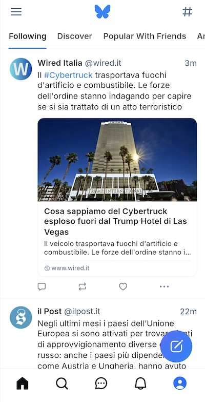 Da qualche tempo ha guadagnato una discreta popolarità Bluesky, un social nato da una costola del vecchio Twitter e che ha un'interfaccia che lo ricorda. Se per qualche motivo vuoi abbandonare X e cerchi un'alternativa, sicuramente con Bluesky avrai il vantaggio di trovarti subito a tuo agio, dato che funzionalità e comandi sono davvero molto simili. Lo svantaggio è dovuto al fatto che ogni social network poggia su due pilastri: il programma informatico (e questo abbiamo visto che non crea difficoltà) e la rete di contatti costruita nell'arco degli anni. Passare da un social ad un altro significa di fatto dover ricostruire tale rete da zero (il che, in determinati frangenti, ha i suoi lati positivi).