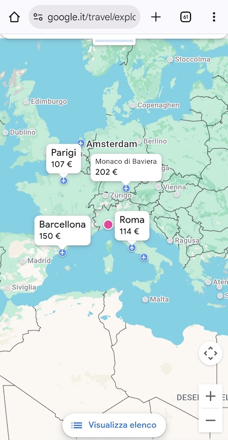 Google Flights è la funzionalità del gigante delle ricerche online per comparare i prezzi dei voli e offrire anche informazioni sulle tendenze di prezzo e previsioni sulle fluttuazioni tariffarie. Per accedervi, da Google cerca “Google Voli”. La mappa interattiva ti permette di esplorare destinazioni in base al budget disponibile o al periodo di viaggio, evidenziando offerte interessanti in diverse regioni del mondo. I suggerimenti immediati sulle date alternative più economiche, i grafici dei prezzi e la possibilità di monitorarli aiutano a pianificare con tranquillità. L’opzione “Condividi” facilita la condivisione delle ricerche con i tuoi compagni di viaggio.