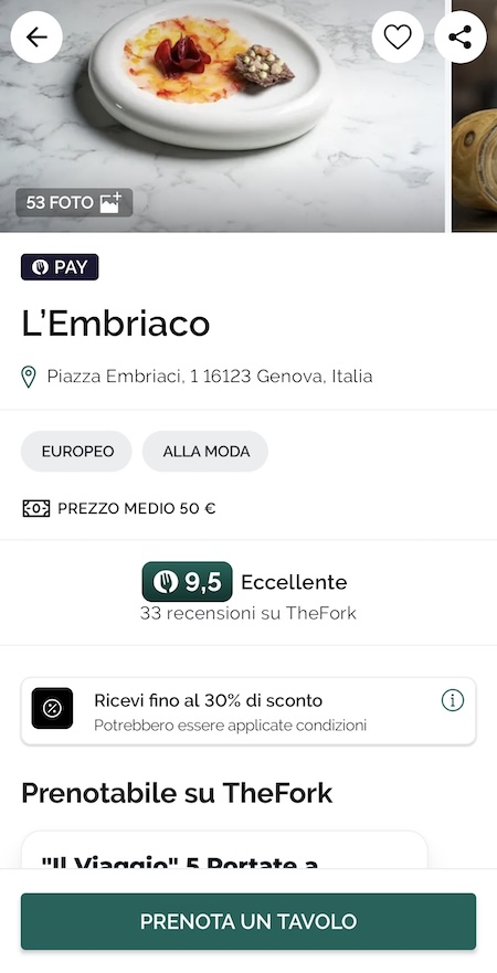 App che consente di trovare ristoranti nelle vicinanze, con il solito corredo di informazioni e recensioni, ma il suo punto di forza è che permette di prenotare tavoli in tantissimi ristoranti, e spesso anche con promozioni che consentono sconti del 20% o più. Accumulando “Yums” (punti fedeltà) ottieni sconti progressivi sulle prenotazioni future. L’app consente anche di segnalare esigenze particolari (intolleranze, tavoli all’aperto) al momento della prenotazione.