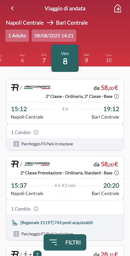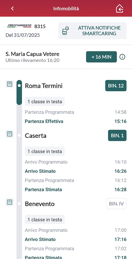 L’app ufficiale di Trenitalia permette di cercare treni regionali, Frecce e Intercity, acquistare biglietti e gestire le prenotazioni. Per ogni treno è possibile visualizzare in tempo reale i binari di arrivo e partenza, eventuali ritardi e variazioni di orario. Si può anche visualizzare il tabellone di arrivi e partenze di una qualunque stazione.