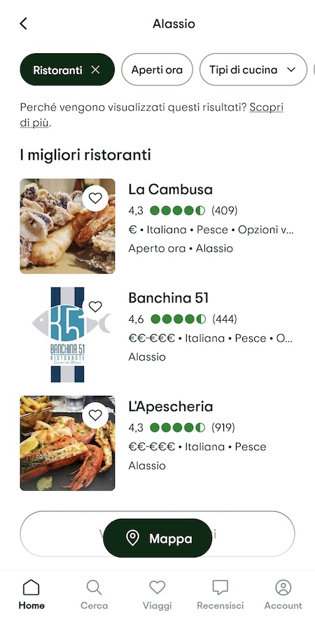 Niente è peggio di arrivare affamati, soprattutto quando si è in vacanza, e non sapere dove andare. Le app per ristoranti raccolgono recensioni, mostrano foto dei piatti e consentono di prenotare tavoli in anticipo, evitando lunghi tempi di attesa.