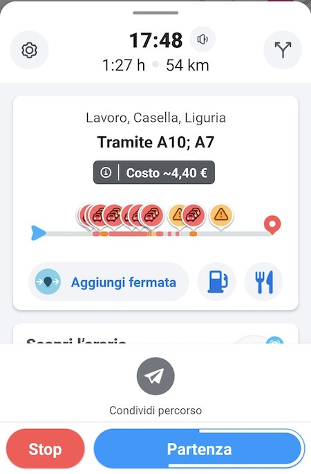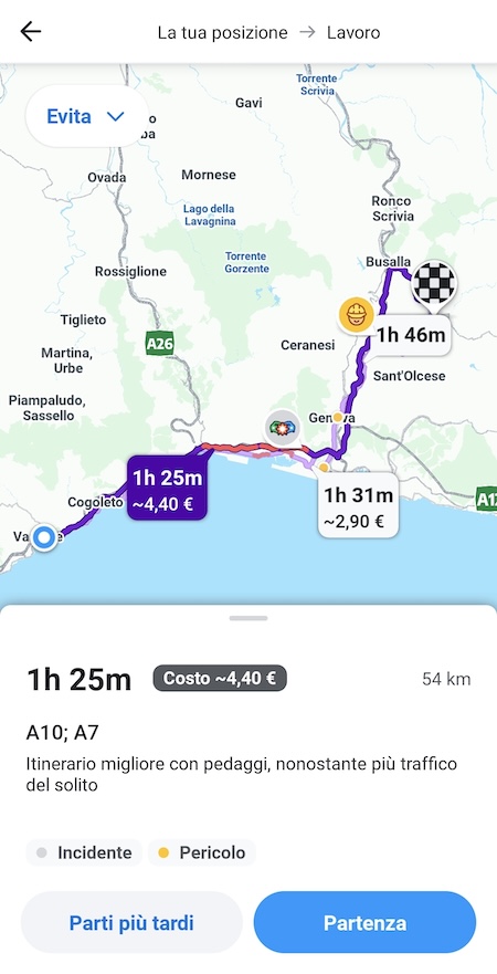 Waze è un'app di navigazione satellitare che fa affidamento sulla sua comunità di utenti per segnalazioni su traffico, incidenti, autovelox e pericoli sulla strada, con stime di percorrenza costantemente aggiornate, che aiutano anche a scegliere il momento giusto per partire nelle giornate complicate. È anche possibile condividere con terzi il proprio itinerario, così chi ti sta aspettando sa a che punto sei e quanto manca al tuo arrivo. L’opzione Posteggi consente di visualizzare i posteggi nei pressi della destinazione.